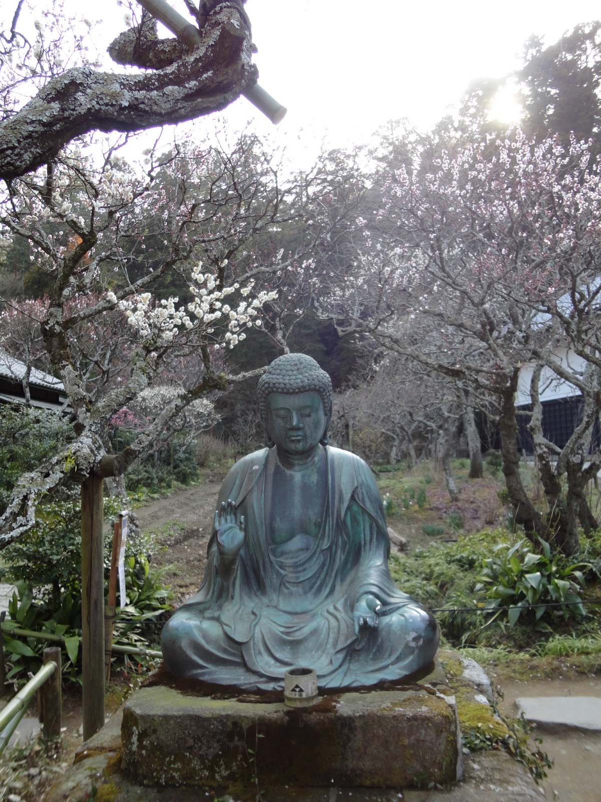 In my case, I got on the train in Tokyo Station, skipped Kita-Kamakura and got off at Kamakura Station, because that’s where the Tourist Office is and I wanted to get a map first. A very kind lady there took the time to give me some recommendations on my itinerary; my guides mentioned the most famous shrines, but she pointed me out a couple of lesser-frequented ones that had blossoming plum trees and were worth checking out (as you’ll see in a few paragraphs, it was completely worth looking out for). I took a bus that dropped me off right in front of the Daibutsu. Is this the first bus I take in Japan? It took me by surprise that I had to pay when getting off, not when getting on.