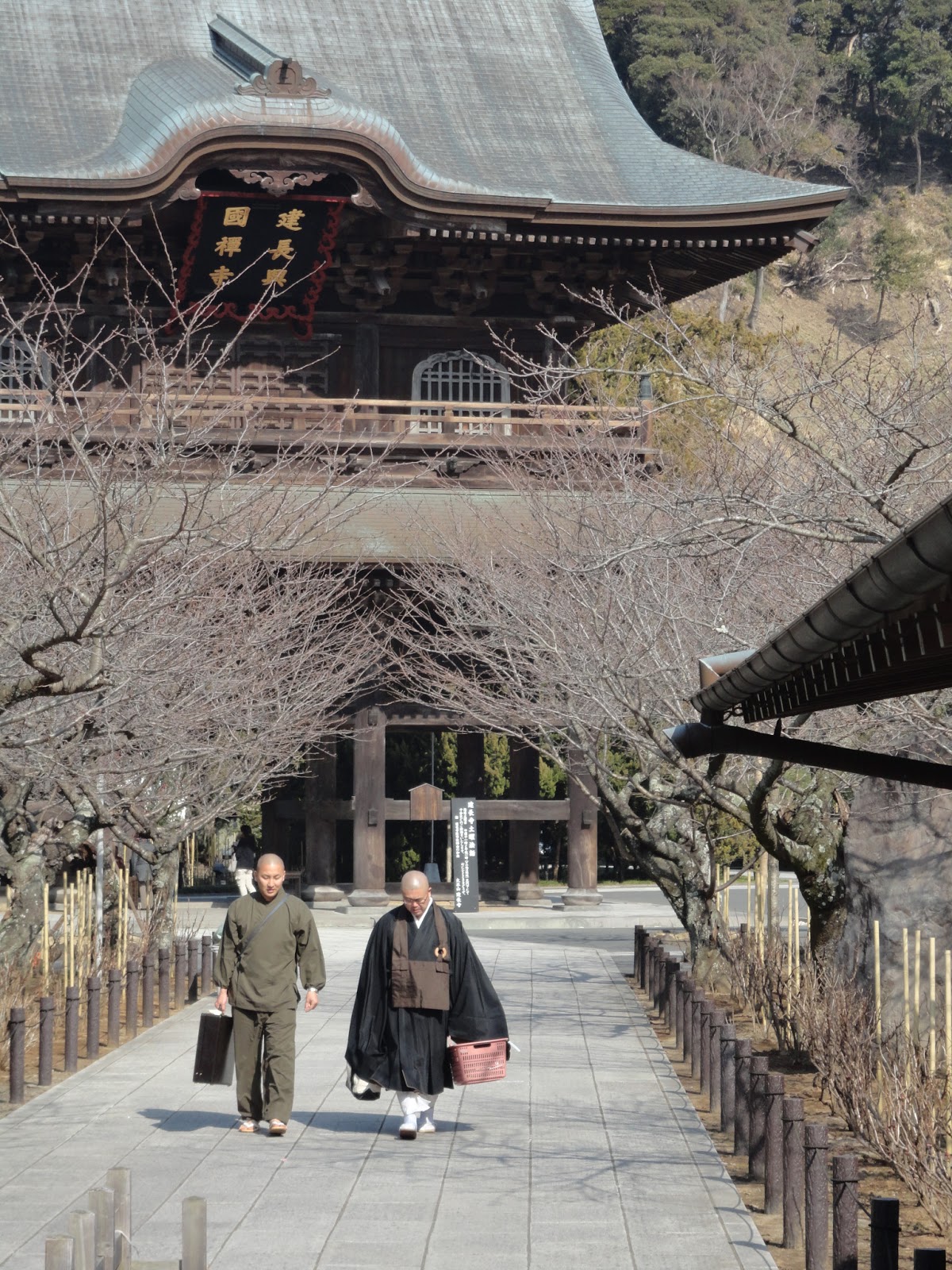 The last stop on my visit, literally a right turn away from the Kita-Kamakura train station, was Engaku-ji, another of the 13th century Zen temples. It looked much more restored than Kenchoji, and less creepy too. It also occupies a big area, although this one is much more landscaped and paved than the others. At this point it was just me and a Japanese couple on the other end of the grounds, and the sun was beginning to shine in that golden light it does right before sunset, so it was a very quiet and relaxing visit.