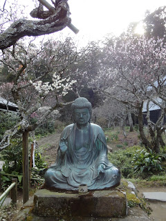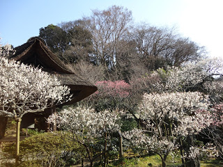 It was also just the perfect day and the perfect hour to visit Tokeiji. It was indeed chock-full of blooming plum tress, so there would be white blossoms everywhere you looked, and by this hour (it must have been three or four in the afternoon) there were only two or three other people in the temple grounds. The sun was only just beginning to hide behind a hill, and the temperature was slowly getting colder. Also of note: the gift shop here was unusually classy. Perfect for tasteful omiyage!