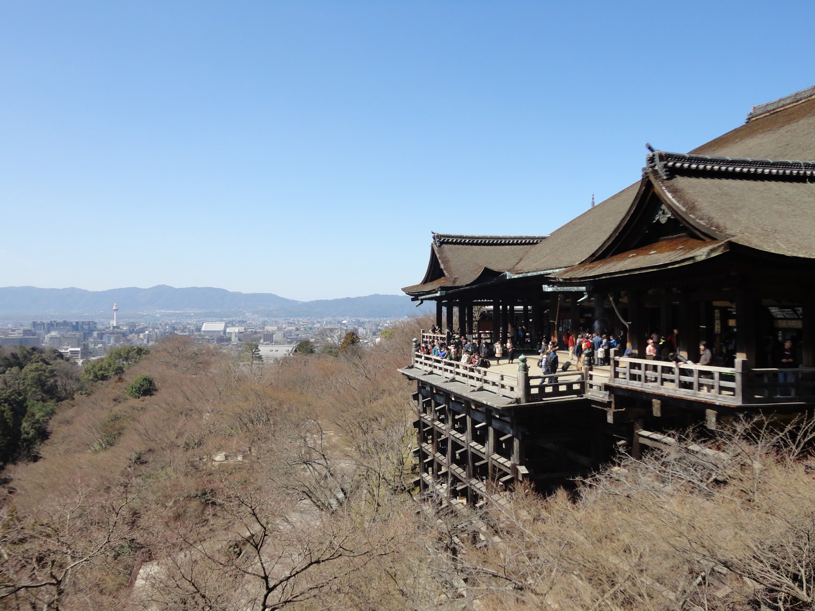 My first stop was Kiyomizu-dera, an impressive temple notable for its wooden deck suspended above a hill; it was assembled, without nails. It has an amazing view of the forest as well as the city of Kyoto itself. After being in the flat, dense urban jungle that is Tokyo for a week, it’s refreshing to see hills and mountains. They provide a visual limit to the space you inhabit, and the uneven terrain offers great sightseeing opportunities.