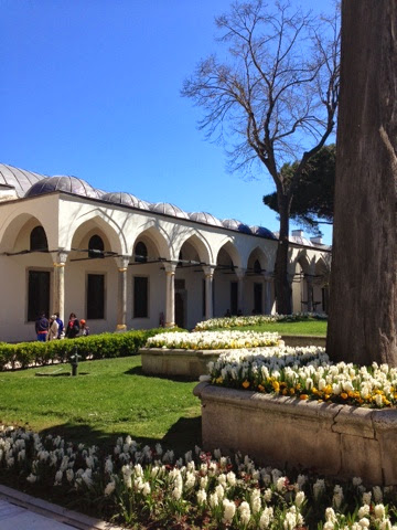 Today the big plan was the palace of Topkapi! I couldn’t have asked for a better day to spend sightseeing: gloriously sunny, but cool, and the crowds were blissfully small. When I walked in, at about ten or ten thirty, I only had to wait in line for my ticket for about ten minutes. When I walked out, at one o’clock, the queue to get in had tripled in size! Good timing!