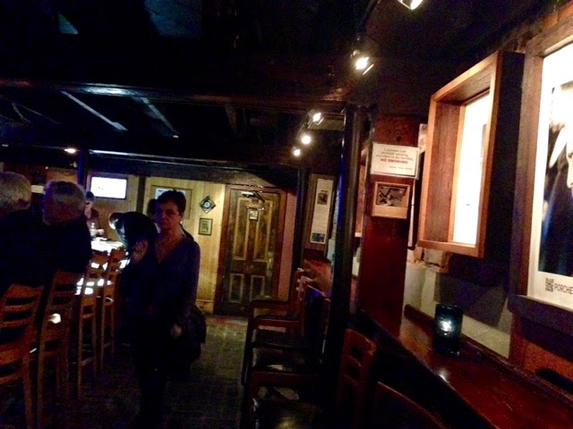 It was past seven when we left the theatre, so just one thing left to do: have dinner with jazz! So once more unto the breach, two endless trams (not as enjoyable the second time because it became dark and only some of the houses were spectacularly lit) and a bit of a walk, and we found ourselves one hour later in Frenchmen Street, New Orleans’ nightlife central. Indeed, the minute we set foot on that street we could hear three different bands playing from as many bars, even on a Monday night in the middle of March. You could hear country, rock, and jazz all around. Many of the bars looked like dives, and some of the restaurants looked seedy, which isn’t my scene, but we were headed towards Snug Harbor, a restaurant/jazz club with a nicer atmosphere.