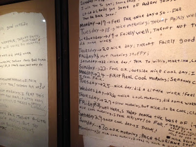 One of the exhibits features the walls of a man who wrote a diary of the hurricane on them: