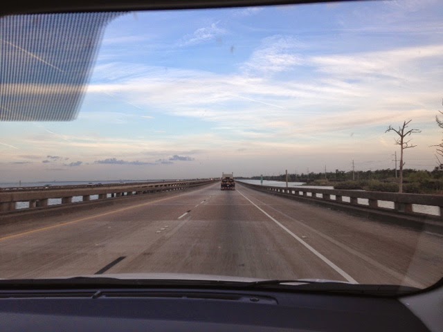 On the way back, we drove down one of those endless roads above the water that we saw from the plane when we got here, and there was a plane flying above us, seeing us the way we saw it just a few days ago. By this time the radio was playing country, in preparation for the future.