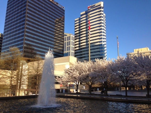 After all this it was still only 5PM, so on our way back to Nashville we stopped by the Tennessee State Capitol to take in the view of Bicentennial Park from above. The park looks nice, but the surroundings weren’t very inviting to get down from our perch. On the upside, Legislative Plaza right in front of the capitol looked stunning with cherry blossoms all around its fountains.