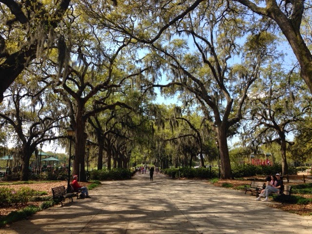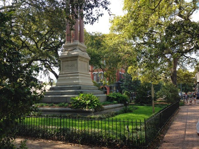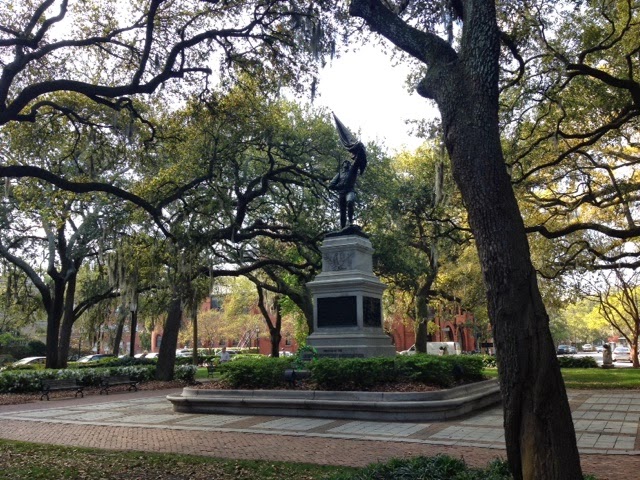 Savannah has lots of small squares at the centre of each ward, with beautiful trees and normally a monument at the centre and lots of benches. It’s refreshing to see benches everywhere; what with defensive architecture being par for the course now, in Versailles and Paris you barely can find a place to sit outdoors. The thing about these squares, though, is that they’re all crazy mismatched in their names and monuments. Let me walk you through it: