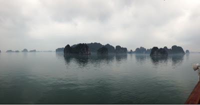 I’m now writing this from the deck as we go back to the harbour. Already I can see the shore and a city on it in the distance. It was certainly the right choice to book the 2D/1N cruise rather than the 3D/2N one; even if the weather had been great, I think there’s only so many hours you can look at the same landscape, however impressive, and the food was so disappointing. I’m ready for the next leg of my trip, although not looking forward to the 4h drive back to Hanoi!