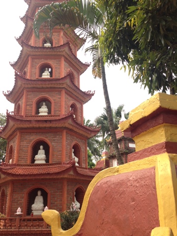 I got back from Sapa via the overnight train and arrived in Hanoi really early, like 4:30. I got back to the hotel, where luckily they had a room available for a shower and a quick nap. I had plenty of time to spare before I had to catch my flight, so I took a power walk to the tem of Tran Quoc, a tiny Buddhist temple with a pagoda. This had the added benefit of taking me to The Bookworm, a nice English-language bookstore where I stocked up on some reading material for the flight. It takes like half an hour to walk there from the Old Quarter and another half to get back, but I welcomed the distraction! Plus I got to practice crossing the streets some more!