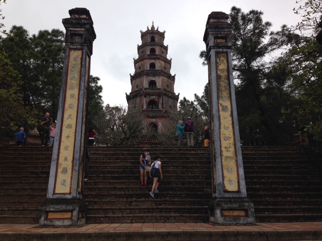 Our last visit was to the Thien Mu pagoda, a seven-tiered pagoda built in the 19th century next to a Buddhist temple and monastery. It’s right on the bank of the Perfume River and looks unusual in that it’s made of red bricks.