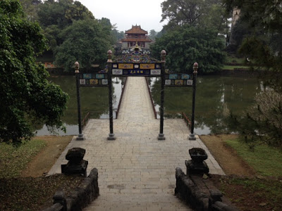 Our third visit was the tomb of Tu Duc, fourth emperor of Vietnam in the mid 1800s. This one is also set in a tranquil forest, very inviting to contemplation and relaxation. Apparently Tu Duc was a bit of a hedonist and loved the arts, had hundreds of wives and concubines, and his shrine is filled with expensive imported Chinese glazings featuring his own poems.