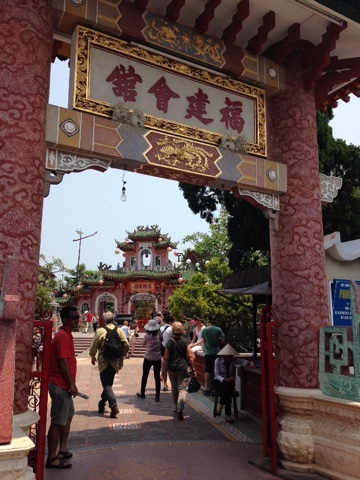 I also checked out the Phuc Kien Assembly Hall (the Lonely Planet guide lists it by its Chinese name of Fujian but you won’t see it referred as that anywhere in Hoi An), which is a very colourful meeting hall for the different Chinese trading families of the 18th century, before the river became intractable to ships. It has vibrantly decorated gates and a nice courtyard leading to the main building with a couple of fountains and bonsais. This one was overrun by German tourists!
