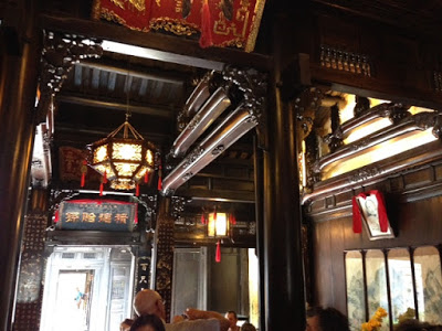I only had one ticket left so I took my time window-shopping, then actual-shopping, walking around, stopping for a rest and a refreshment… It was hot under the sun and the town was alive with people. I eventually made my way to the temple of Quan Cong, a Chinese temple with statues and a nice open courtyard.