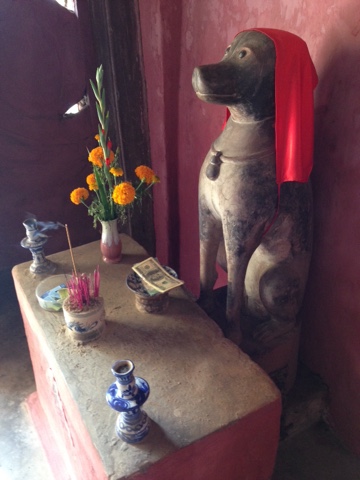 Today I was more disciplined and began crossing off items on the list of Hoi An’s historical sites. You have to buy one ticket to the Old Town for 120,000 VND (€5) and that gives you access to any 5 Hoi An sites of your choosing. I used my first stub on crossing the Japanese Covered Bridge, a holdover from when Hoi An was a bustling trade port and populated by Chinese and Japanese merchants as well as the Vietnamese. It’s tiny, but looks picturesque over the river and the old streets. On the inside it has two pairs of statues guarding each side: dogs on one, monkeys on the other, plus it has an entire shrine in the middle.