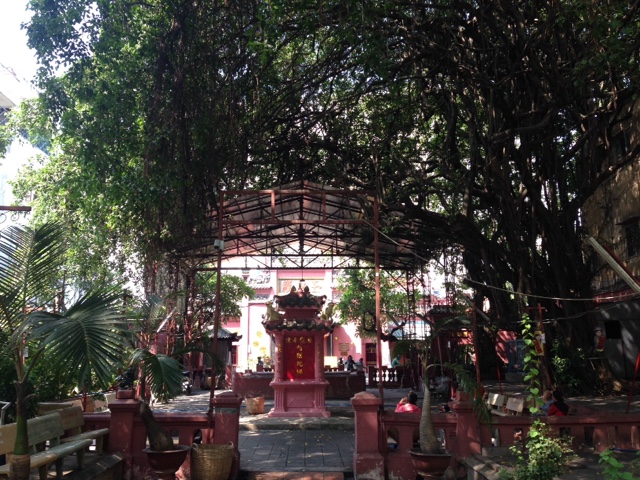 I had the hotel call me a cab and I went to the Jade Emperor’s Pagoda, as recommended by my LP guide. It’s 3 km away from the city centre, which came down to 51,000 VND (€2,15). It was… not what I expected. For one thing, I didn’t see any pagodas. It’s a shrine, built in the early 20th century in honour of the highest Taoist god (the Jade Emperor). It was dark and filled with statues and incense urns. It’s very much a place of worship and not geared for tourism, as evidenced by there being only one word in English in the entire place -“Exit”. I know how to catch a message. On the outside, there’s a tiny pond with dozens of turtles sunbathing lazily over each other.