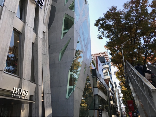 All the clothing stores in Omotesando belong to prohibitively expensive multinational brands, which I don’t care for, but I like the architecture of the avenue. Instead of having large blocks, there are many narrow buildings of totally different styles. There are avant-garde glass houses, classy cubes of dark stone, faux-British colonial mansions, red brick façades, modern swirly concrete towers… All within a five-minute walk.