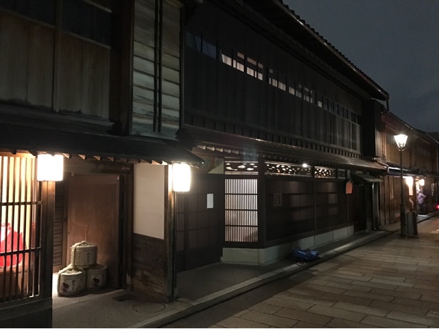 The bus took us very promptly to Higashi Chaya-gai, a 19th century geisha district where all the old wooden houses have been preserved. We got there just as the sun was setting, but even in the dark we could see that it’s a charming neighbourhood.