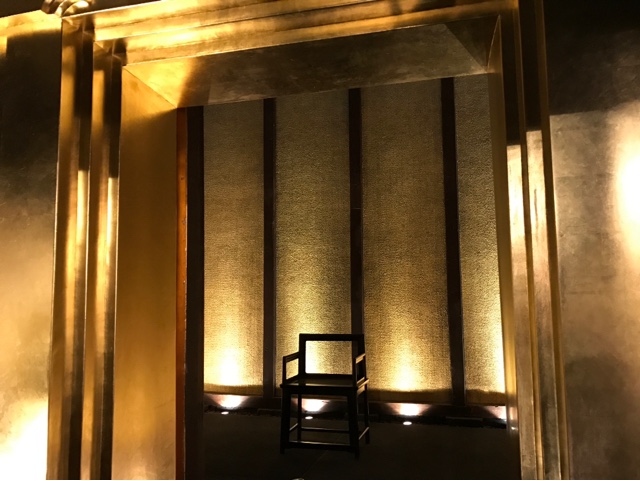 Kanazawa is famous for its gold leaf artisanship, unparalleled in all of Japan. Apparently the artisans here developed unique techniques to melt and mold gold into extraordinarily thin leaves that they then apply to lacquer or ceramics. There are two amazing shops in Higashi Chaya-gai where you can see the results of this craft: one is Hakuichi, the other Hakuza; the former is bigger and more affordable, while the latter is more upscale and has an amazing courtyard with a room that they have covered entirely in gold, on the inside as well as on the outside: