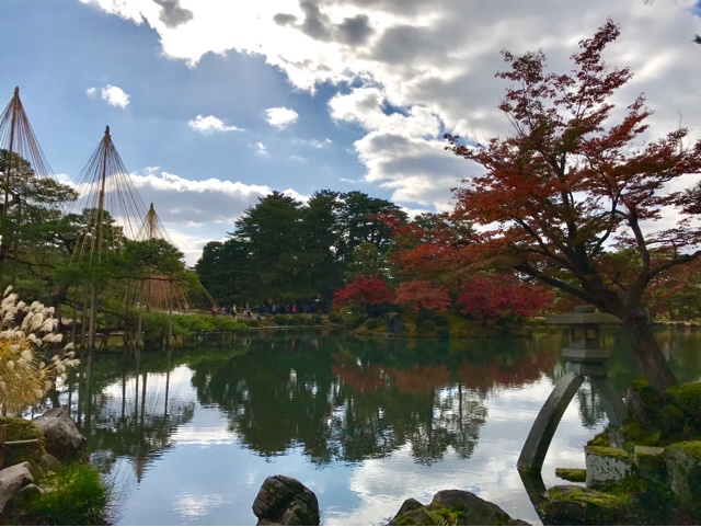 One of the many monuments in the garden is to Matsuo Basho, the celebrated haiku poet, and it displayed a sign with one of his haikus that was apparently written here in Kanazawa in the 17th century. If the websites I’ve checked are correct, it’s a haiku about the sun shining in the face of cold autumn winds. It was an amazing feeling to read that in this stunning garden while, almost four hundred years later, the sun is indeed shining in the face of cold autumn winds.