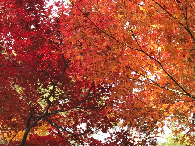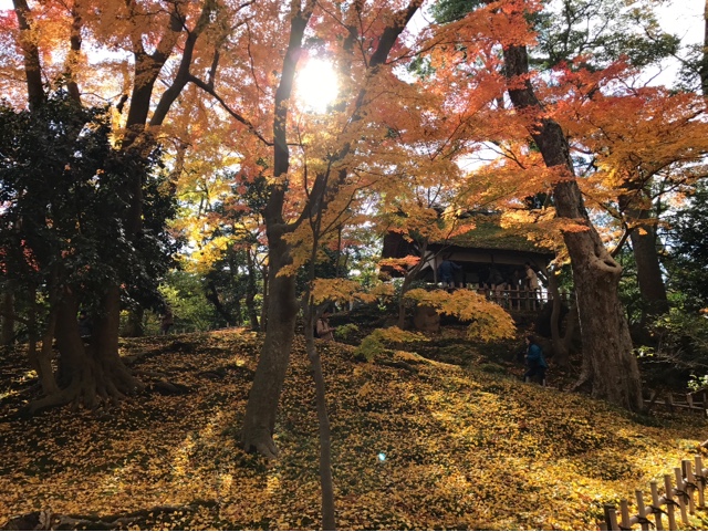 The deeper we went into the garden, the more vivid colours we seemed to find. Many trees were still green, many were transitioning from yellow to orange, some were bright red, some were even a darker, rust shade, which I hadn’t seen before (in Kyoto, maple tree leaves seemed to fall before reaching that shade).