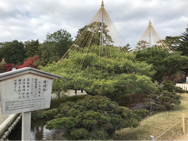 A very typical Kanazawa sight is that of giant cherry trees with ropes tied to their branches; they do this all through winter so that the heavy snows won’t weigh the branches down. Other trees had crutches or girders to support or to guide them; this is the principle of artificiality, the painstaking work required to make something look natural and spontaneous.