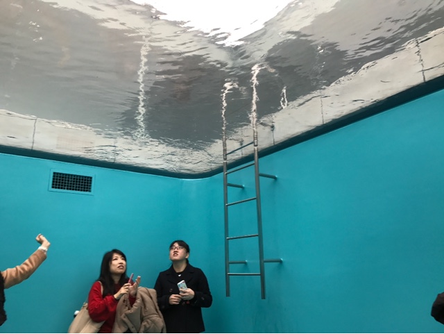 To our surprise, the place was packed, mid-morning on a Thursday! Lots of Japanese patrons, several classrooms of kids, and a few foreign tourists. The main exhibit was about pairs of everyday objects, like phones or kitchen utensils, one with a traditional design that has withstood the passage of time, the other a modern take on it. There were also paintings, a nice museum shop, and an interesting installation that looks like a swimming pool, except you can walk into a room under it and it looks like you’re under water.