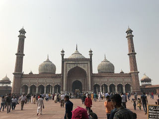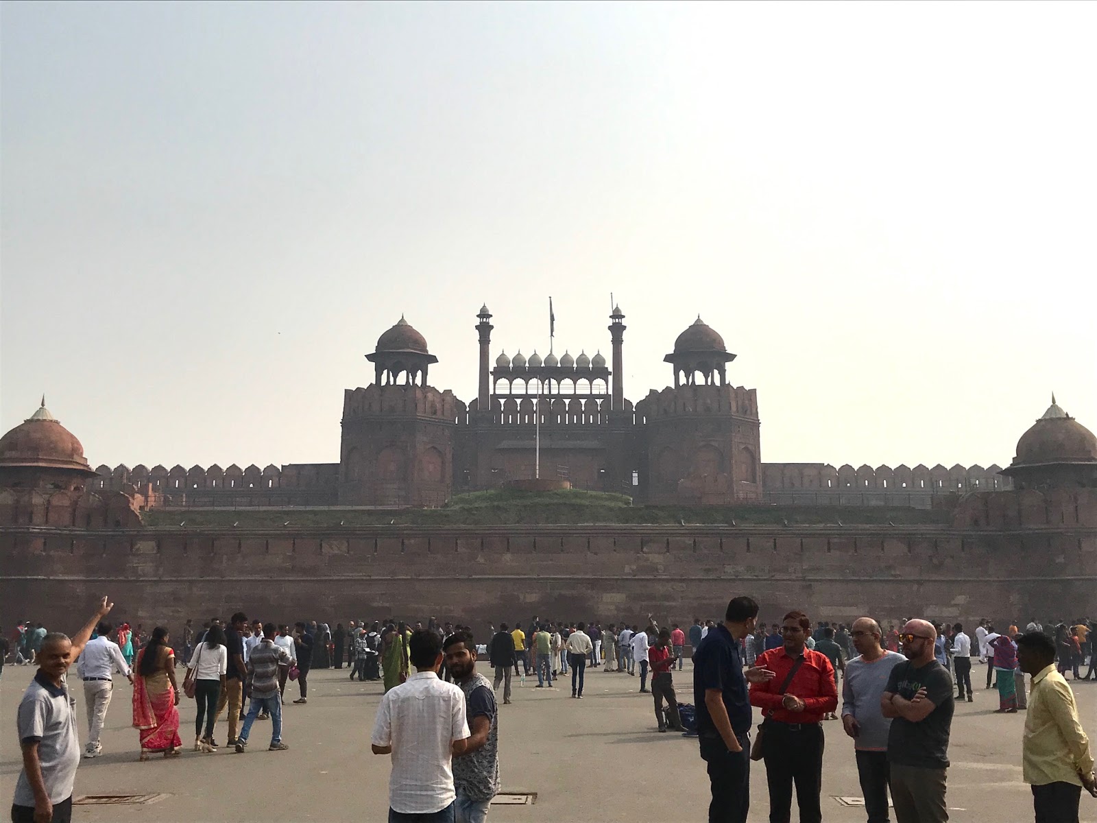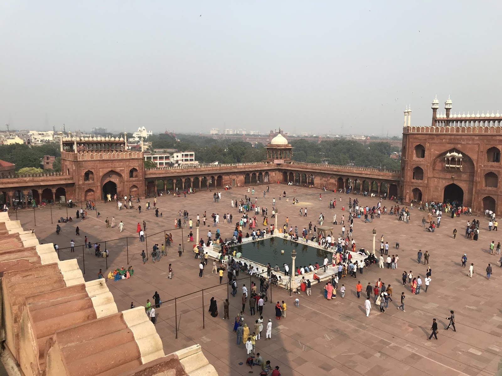 After gawking at the view for a minute, I climbed back down and left the mosque. Funnily enough, they had “cleaned” the floors of the exit, by hosing them down with water, which I guess was no big deal for barefoot people but I was wearing my socks and wasn’t thrilled about the prospect of either exposing my feet or wetting my socks (I ended up tiptoeing through on very long strides). While I was putting my shoes back on outside, an Indian man walked over and asked me for a picture. This happened already inside the Red Fort; at first I was super confused because I am very mistrustful of strangers in my best day, and moreso in places where scams are plenty (I’ve heard some locals will try to tell you stuff about the place you’re visiting and then try to charge you for their guide service), but in the end turns out they really just wanted to take a selfie of themselves with a white guy. I didn’t know what to do so I acquiesced. I am now in people’s holiday photos!