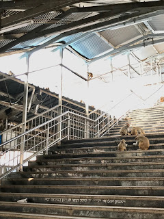 When I arrived at the station, I was fully prepared for more “Your train is cancelled” type scams, but no one so much as uttered a word in my direction. Inside, the place was overrun by families of monkeys: on the stairs, on the roof, on the trains, walking up and down the platforms like they owned the joint, occasionally trying to snatch an unsuspecting person’s bag.