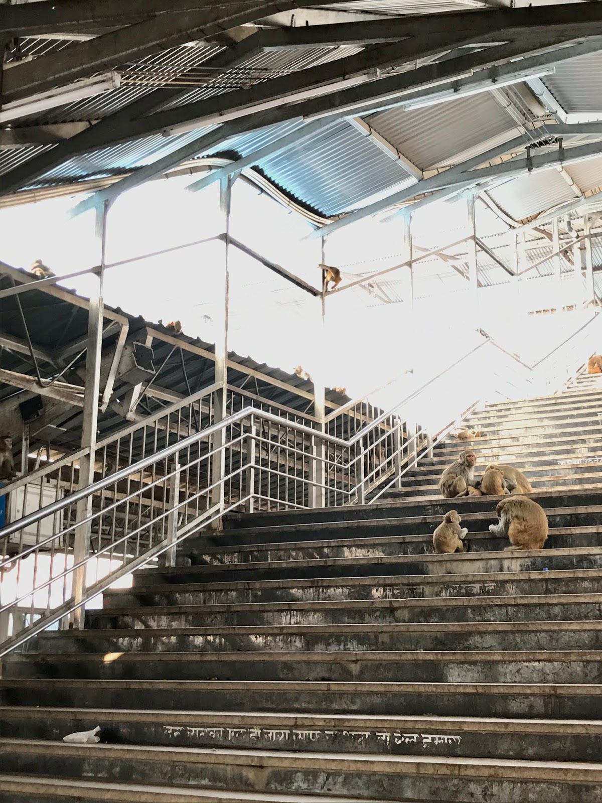 When I arrived at the station, I was fully prepared for more “Your train is cancelled” type scams, but no one so much as uttered a word in my direction. Inside, the place was overrun by families of monkeys: on the stairs, on the roof, on the trains, walking up and down the platforms like they owned the joint, occasionally trying to snatch an unsuspecting person’s bag.