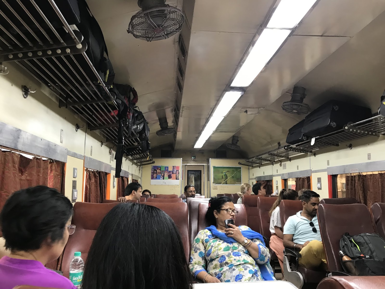 As people kept arriving, including a shocking number of foreign tourists, there was some mild chaos on board because we found out that the train company had messed up the seat numbers: that is to say, the seat numbering on the train had nothing to do with what we had booked on the website. Couples were sitting apart, people who had booked window seats were in the aisle and viceversa… I was placed in the middle seat between an Indian family; I was relieved when they asked me to move to the aisle by the kind man who asked me where I was from (they’re from Kolkata). Eventually everyone negotiated new seating arrangements, the official who checked our tickets couldn’t care less, and we got on our way more or less on time.