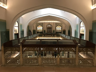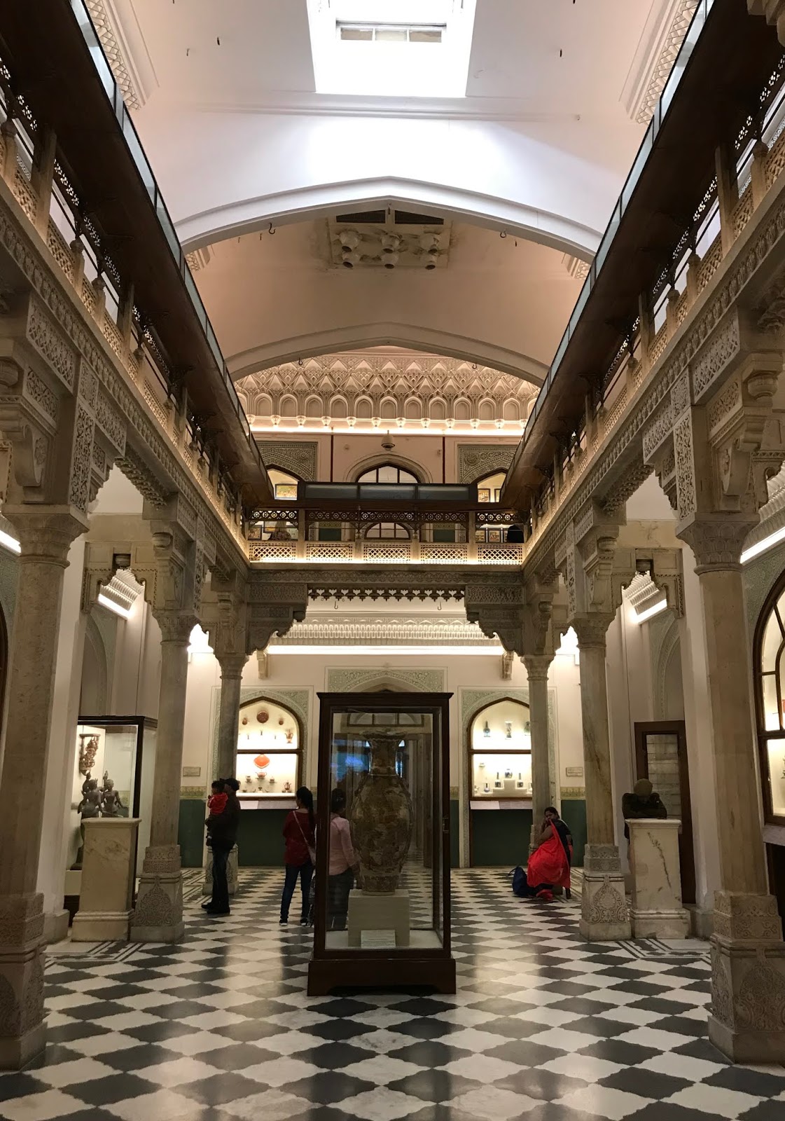 The building seems largely untouched from the 1880s, and the interiors are a peculiar mix of British and Indian aesthetics: there are checkered black-and-white marble floors and wooden shelves, but also murals and pastel colors and arched hallways. Unlike the city palace, this museum takes you on a predefined route across all of its collection. I was already tired, so I appreciated not having to check where I was every five minutes!