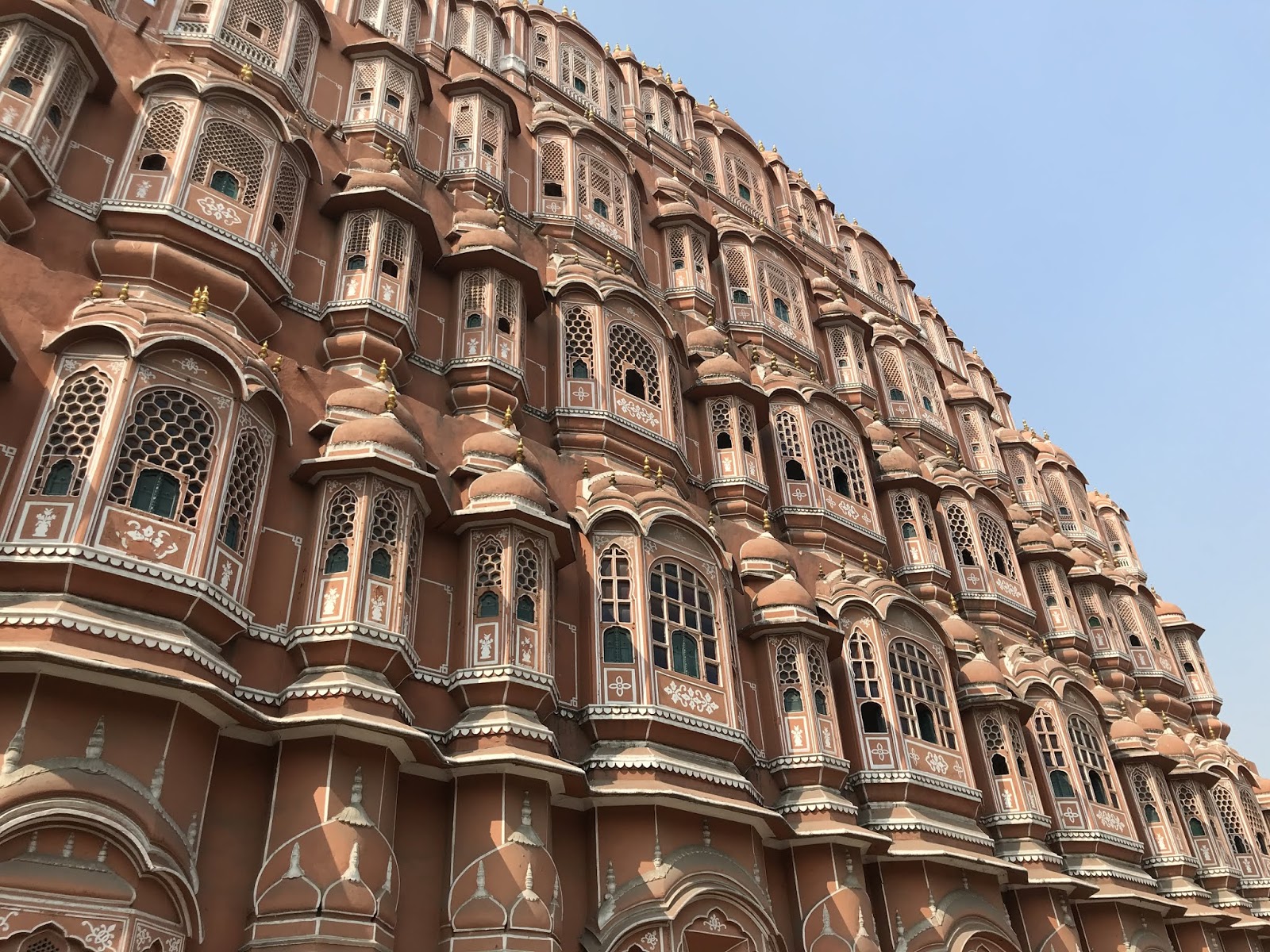 Eventually I walked out to the hot noon sun and walked five minutes to a side to find Hawa Mahal, another famous Jaipur sight that you might have seen online: a house with hundreds of small windows, known as the Wind Palace for its air currents, which was made for women to be able to see the streets below unobserved. It’s a gorgeous building, but somewhat difficult to appreciate because of the heavy traffic on the road it’s on. A young Indian man asked me for a selfie while I was gawking at the building; I went to take off my hat and sunglasses, but he went “No no, with”. I guess he wanted max touristiness!