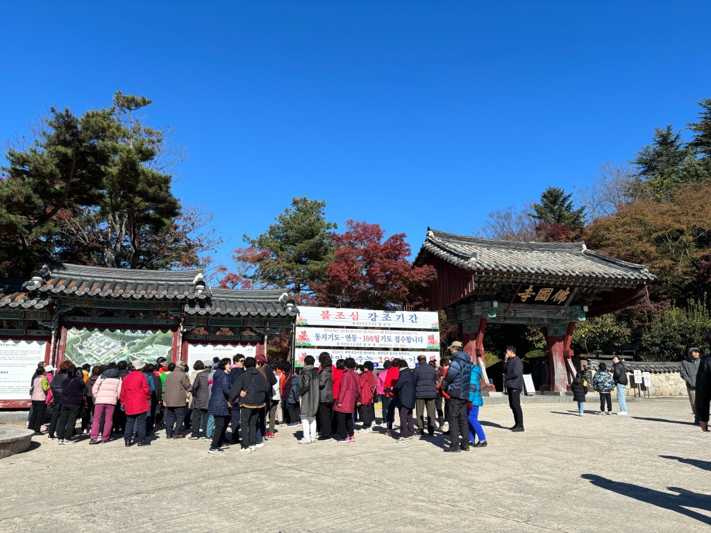 My plan for the morning was to visit Bulguksa, an important Buddhist temple outside of Gyeongju. There are a bunch of regular buses that can take up to fifty minutes to get there, but also “seat” buses -whatever that means- that take just under half an hour. I just do whatever Naver Maps tells me!