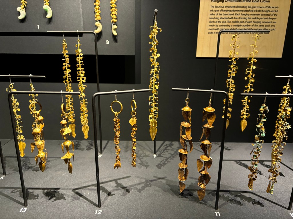 If you consider that we’re talking about objects that are between one thousand and two thousand years old, they truly have amassed an astonishing collection. There are statues, tools, weapons, roof tiles, even a priceless paper with Buddhist prayers written on it, and most importantly, the personal possessions of the kings and queens that were excavated from the tombs I visited yesterday. Look at these exquisitely sculptured ornaments, that would be attached to the sides of crowns like earrings: