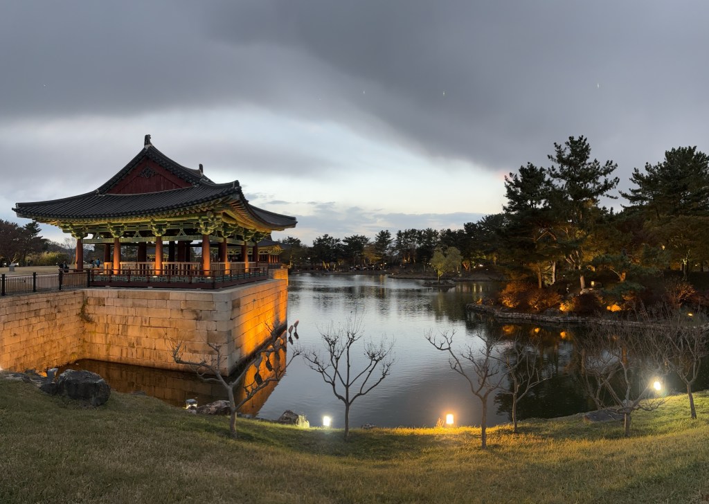 Lastly: I thought I was so smart! I had timed my visit to the museum so that night would fall just as I was leaving, because to cap off the day I wanted to visit Donggung Gwa Wolji, aka Anapji, a beautiful pond surrounding a few reconstructed pavilions.