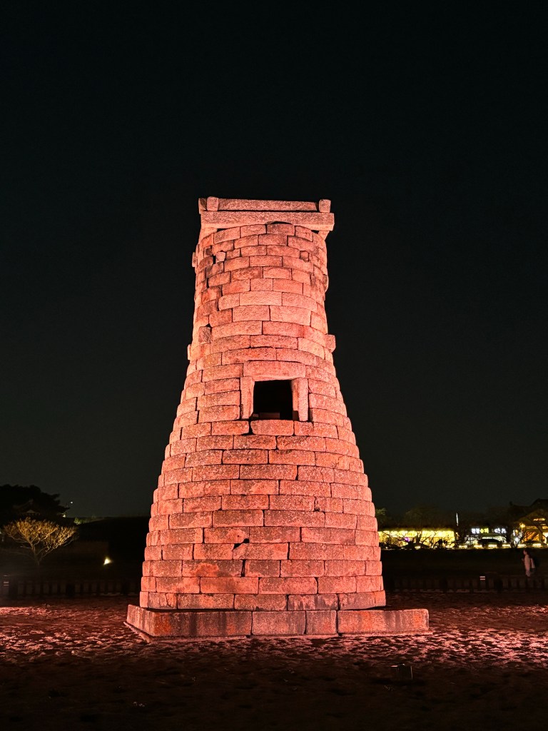 At about five thirty, when it was already getting dark, I left my lair like a vampire and headed across town to see the Cheomseongdae Observatory. At first sight a small stone construction that might as well be another funerary stupa, it is in fact an astronomical observatory from the 7th century! It is believed to be the oldest known observatory in Asia. I don’t know about you, but I never get used to the awe of laying my eyes on an object that has been around for more than a thousand years.