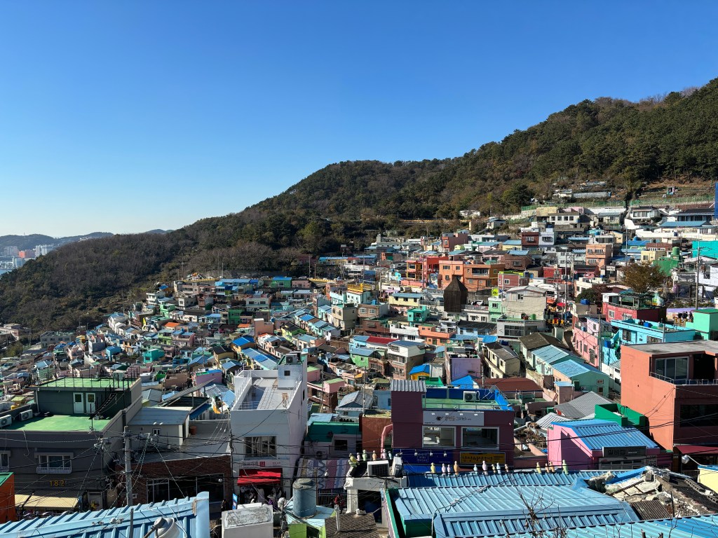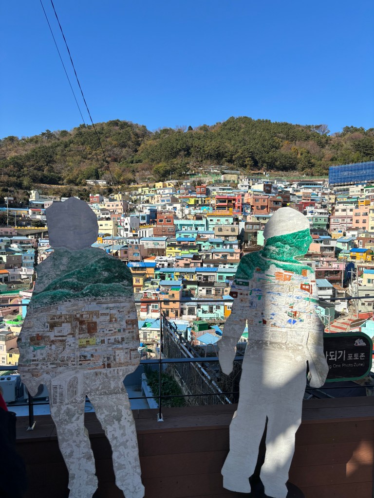 For my first day in Busan, I decided to start with an iconic sight: Gamcheon Village! Originally, Gamcheon started as a slum of houses for post-war refugees, draped along the slopes of a hill. In the 1990s, however, the city turned it into a lived-in art project, filling it with murals, sculptures, decorations and all sorts of art installations right alongside the houses where people continue to live.
