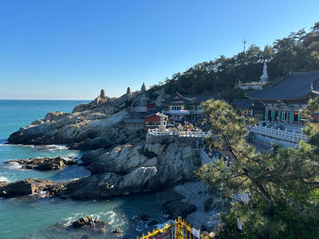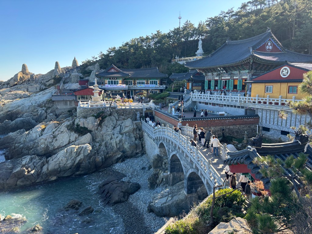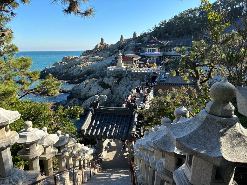Finally, after a short walk uphill and then downhill, and through a gauntlet of food stalls and souvenir stores, the winding path opened up and I found myself looking at the gorgeous Hadeong Yonggungsa temple.