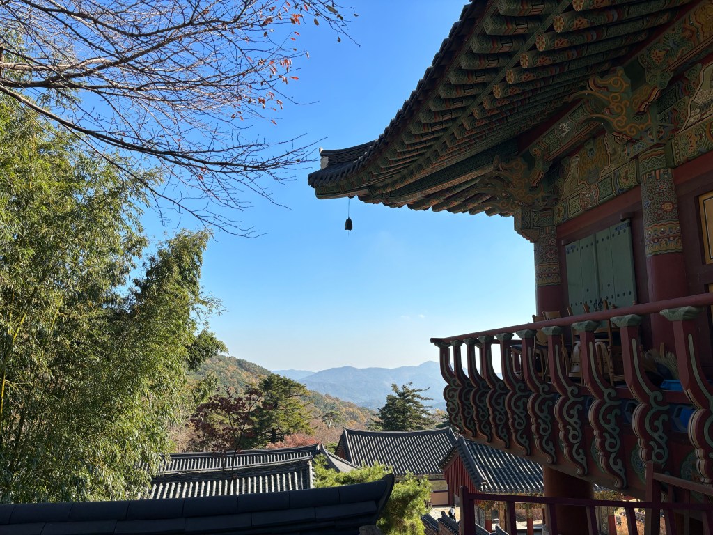 The temple occupies a large extension of interconnected structures, many of them off-limits to visitors. After all, these temples all carry out their own work despite the tourist activity, and this one more than most sustains a thriving templestay practice; that’s a national Korean program through which people can stay in temples and experience life as a novice. Reading about it, it sounds more practical than what I did in Koyasan in Japan (as chronicled in this blog): there I was basically a paying hotel guest, whereas here it looks like guests are way more integrated into the monks’ life, for better and for worse.
