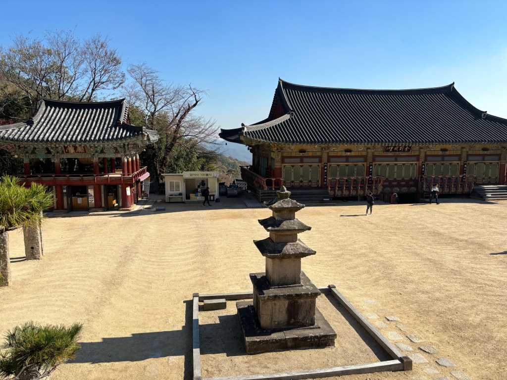 (A note on temples: with the benefit of hindsight, if I had to redo this trip I would take one day off Busan and try to rework the itinerary to try and see Haeinsa, another one of the country’s top temples. The reason is that, being a huge nerd, I am fascinated by the temple’s biggest treasure: the Tripitaka Koreana, a marvel of philology and conservation. It is a massive collection of Buddhist sacred texts, written on over 80,000 wooden tablets, in the thirteenth century, with the express purpose of preserving them for centuries -and it worked! I invite you to look it up if it appeals. I don’t actually think you can see the tablets themselves, hence why I didn’t feel too pressured to go to Haeinsa in this trip.)
