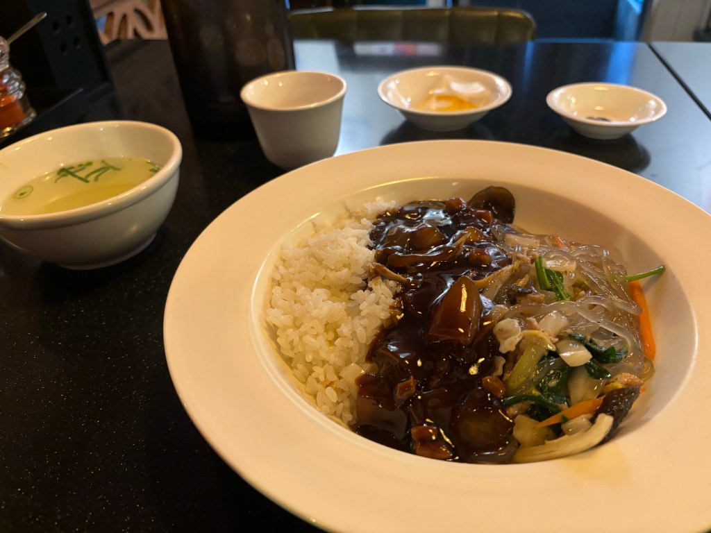 Anyway, that was it for me! Nothing left but to go back to my apartment and then on to a farewell dinner. I’ve spent all trip wanting to have japchae, Korean glass noodles, which I think is the only Korean staple that I haven’t tried, but they didn’t offer them at any of the places I’ve been to. I think it might be that it’s too “common” a dish, like if in Spain you tried to find a restaurant that made French omelettes. Anyway, finally today I found a Chinese-Korean restaurant in Seomyeon that had a dish that was half-japchae, half rice with black bean sauce. It was delicious! What a great note to end a great trip on.