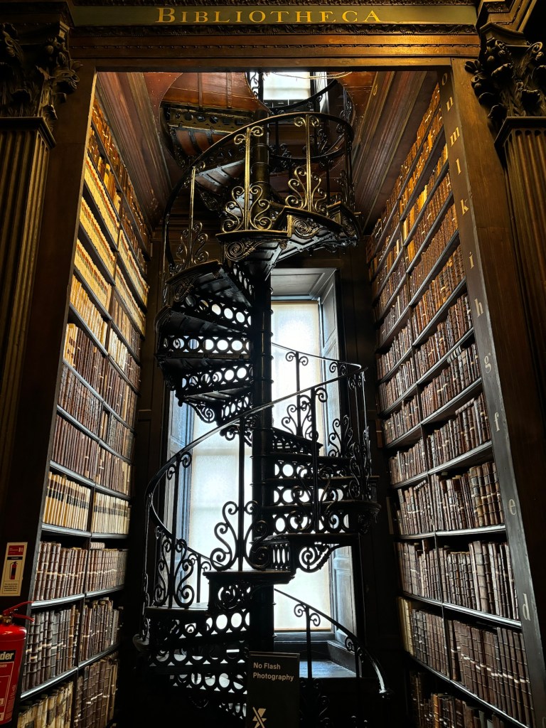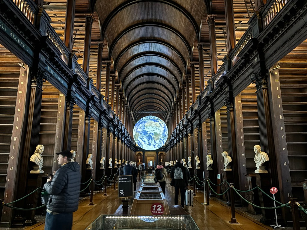 Anyway, from there I went upstairs to find the Long Room, the iconic 18th century library that you have no doubt seen in pictures or Instagram reels countless times. It is stunning in person, just gorgeous to look at, although today I found it almost completely empty of books (turns out they have taken them out for preservation and restoration) and with a rather incongruous floating sphere representing the Earth rotating in the middle (an art installation that I presume has been installed to make up for or distract from the absence of the collection).
