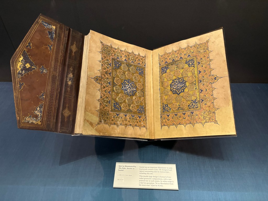 The second floor also displays literary exhibits but it is dedicated to sacred texts from various world religions, including Christianity, Islam, Buddhism, or Hinduism, and smaller explanatory sections dedicated to specific disciplines like Sufism, Sikhism, Daoism, Zen… I liked that the accompanying texts didn’t just explain the works on display but also gave concise explanations of each religion and its core practices and beliefs.