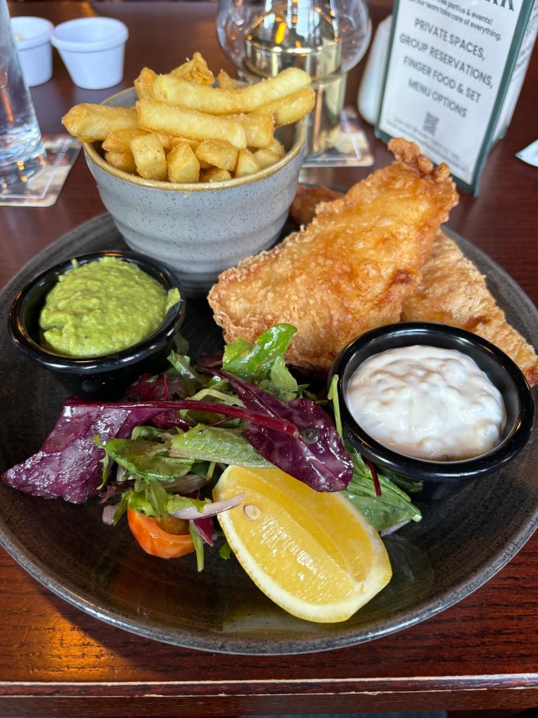 After having an array of international cuisine all through the weekend, I wanted to pay my respects to Irish cuisine by going to a traditional pub. I opted for The Landmark, which is a storied pub near St Stephen’s Green. It’s where I wanted to go last night, but was kept out by the crowds of revelers and rugby fans. Today, at 12:30, I had the pub practically all to myself and ordered a perfect fish & chips that I had been craving since yesterday. The crust was crispy, the fish was well cooked, the tartar sauce savory… I couldn’t have asked for a better sendoff from Ireland!