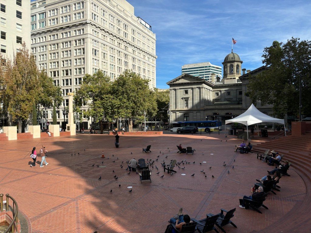 To add some culture to the mix, we also checked out Pioneer Courthouse Square, the symbolic center of Portland, although it felt smaller and less lively this time than when I visited in 2018. Maybe it’s because it’s a Monday and there’s less buzz around it?