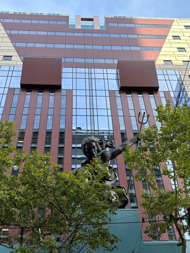 Finally, I rectified my failure from my last trip and this time I got to see Portlandia, Portland’s equivalent to the Statue of Liberty. Even though it is one if the symbols of the city, it is almost impossible to see any pictures of it, because the author of the sculpture owns the rights to its image and refuses to sell it -meaning it does not appear on guidebooks, posters, postcards, keychains or anything like that. I do believe I am allowed to show you it, because this is not for commercial purposes, but just in case keep this between us!