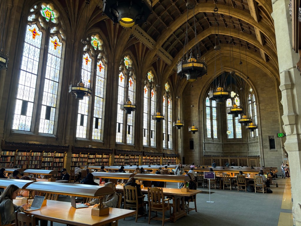 Next up, we walked over to the University of Washington campus, which was teeming with crowds of students probably coming back from lunch. Our goal was to visit the Suzzallo Library, this bizarre cathedral-looking building in the middle of an otherwise hideous assortment of concrete and brick buildings. When you walk inside, the library itself looks like nothing at all, all white walls and floors, but if you make your way up the stairs and into the reading room, you’ll find yourself in the middle of a Gothic chapel: