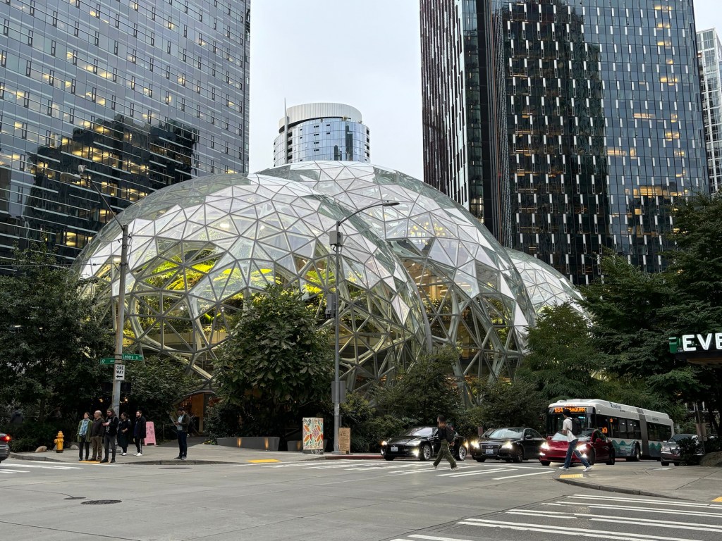 We made one last foray out to do some last minute shopping (or window shopping, because everything is so crazy expensive here: a Zara sweater that goes for €25 in Spain costs 45$ here!!) that turned into last minute sightseeing when we made a detour to look at the Amazon Spheres, two futuristic glass domes that work as a sort of urban greenhouse that serves as a working space for Amazon employees. I believe they are open to visitors on certain days, but either way it was past closing time so we just gawked at the sci-fi looking structure from the outside.