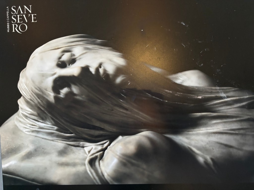 I retraced my steps down Via dei Tribunali. The shadows were growing longer, and if I thought it was warm for my thick winter jacket, as soon as the sun began to set a cold breeze descended upon the streets. I walked straight into the Cappella di Sansevero, a tiny but gorgeous chapel holding a number of sculptures, most famously Giuseppe Sanmartino’s Veiled Christ. Tragically, they don’t allow photography inside (I suspect it’s because the Christ is like, their one claim to fame in a minuscule space and want to protect it) so I couldn’t take pictures. Instead I took this picture of a picture from the sign outside, so you know which sculpture I mean: