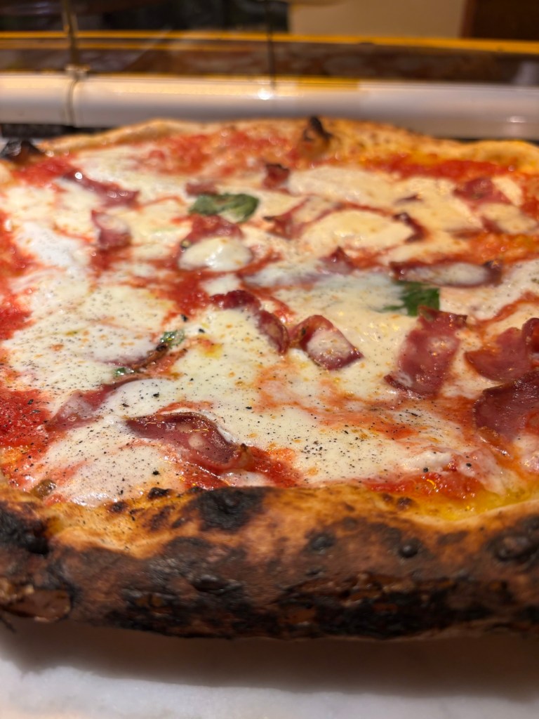 Reader, it was delicious. The dough was paper thin, but still there was so much of it that I left feeling massively full. The cheese was creamy, not rubbery, and the leaves of basil gave it a fresh aroma. A wonderful first Neapolitan meal -but it may be the last because right now I don’t think I can eat for the next 48 hours!