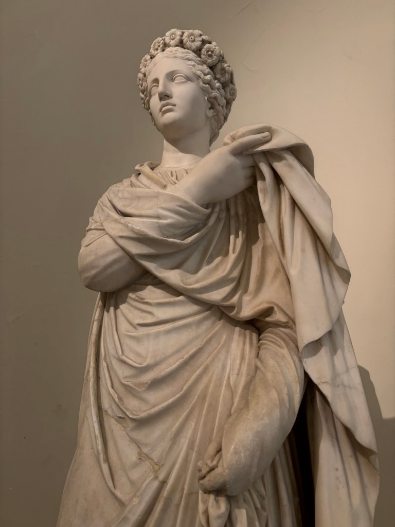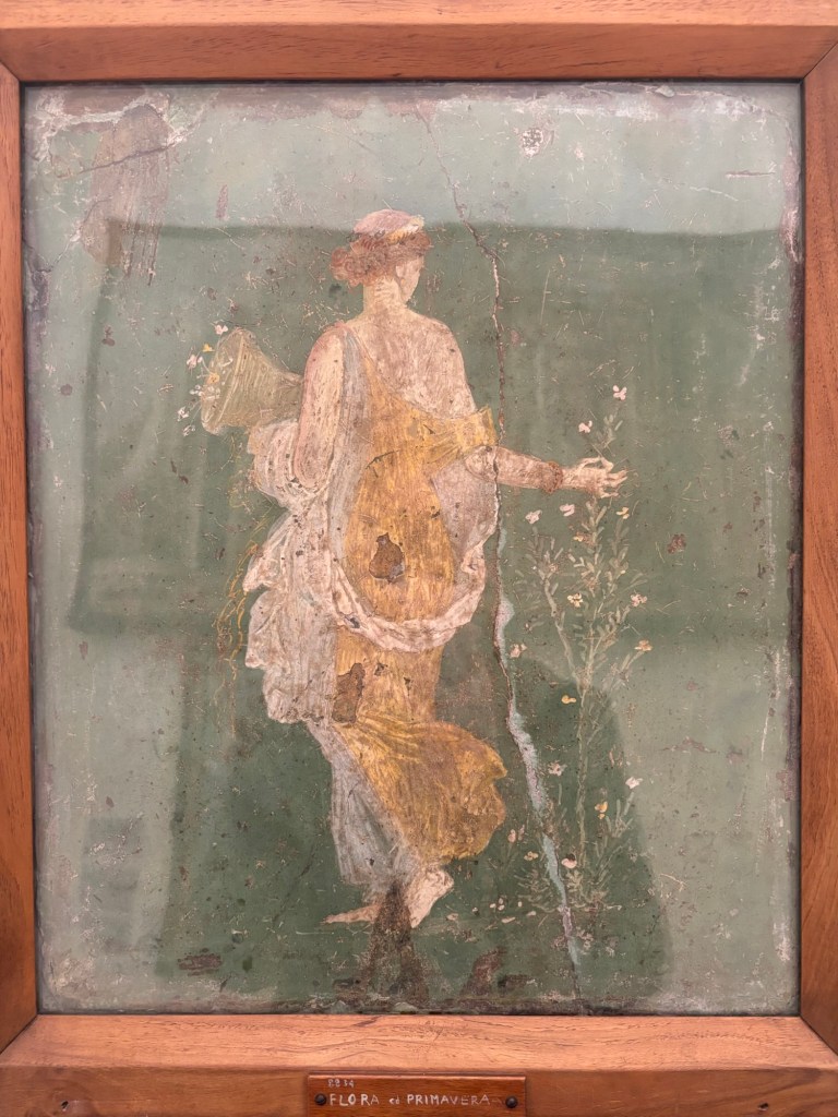 The Campanian and Farnese collections occupy most of the large first floor, although unfortunately there is apparently a gem collection that is currently closed for renovation. I do like a jewelry collection, like the exclusive diamond room at the Hermitage (you can read about it on this very blog). On the second floor there was a collection of frescoes, also taken from the surrounding ruins; here I wanted to see the famous Flora, which is almost hidden in a small frame on a table in one of the rooms. I first encountered this beautiful painting (misidentified as the nymph Flora but actually of Persephone) in London, when I got to see the British Museum’s temporary exhibition on Pompeii, so it’s been a bit of a full circle moment for me.